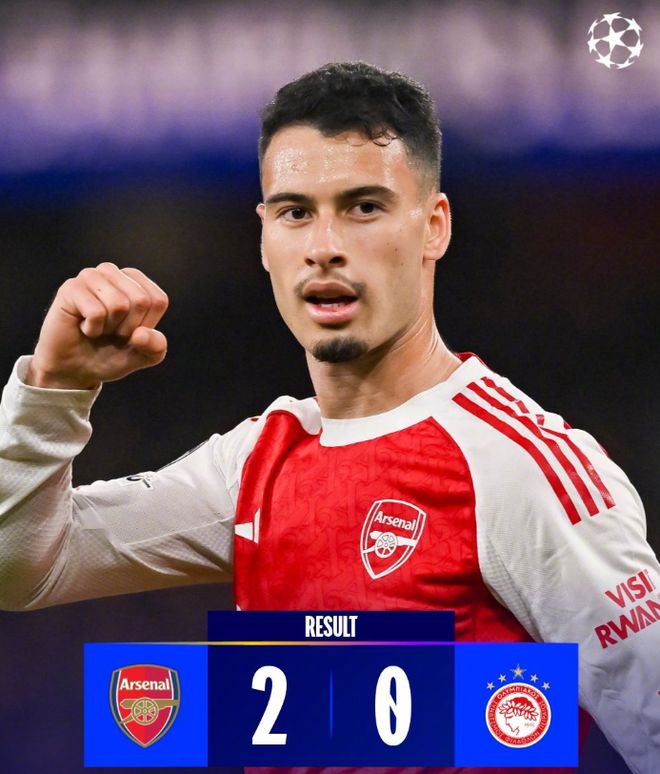 盡管奧林匹亞科斯底蘊不如阿森納,但是在兩支球隊上一次碰麵時,卻是奧林匹亞科斯笑到了最後,時隔3年再度相遇,渴望在主場複仇的槍手,此役在主場也是派上了絕大部分主力,上半場馬丁內利就門前補射,幫助球隊早早取得領先,下半場客隊一度扳平了比分,可惜越位在先,進球被主裁判取消,逃過一劫的阿森納,最後時刻靠著薩卡的進球,徹底終結了勝負懸念,以2-0完勝奧林匹亞科斯。