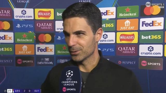 歐冠聯賽階段第二輪,阿森納主場2-0擊敗奧林匹亞科斯,賽後,槍手主帥阿爾特塔接受了TNT體育的采訪,他稱讚了厄德高和全隊的表現,表示很高興取得勝利並零封對手。